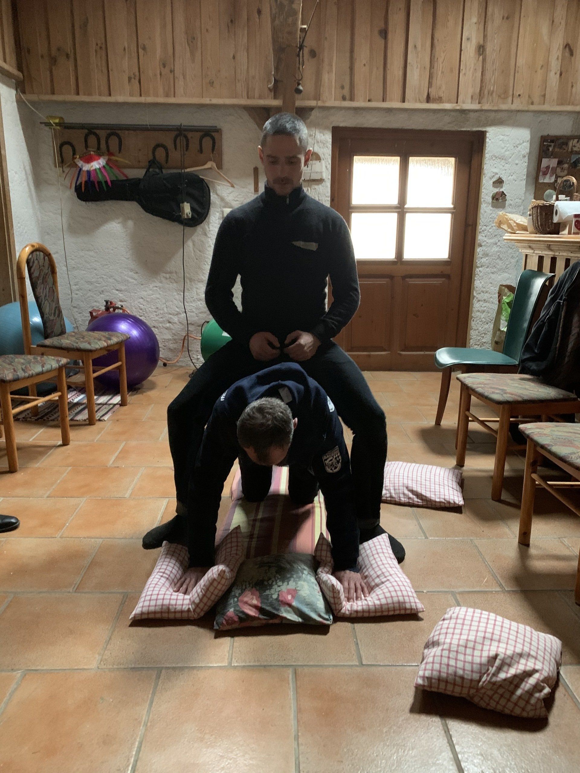 Das tuen wir, indem wir die Teilnehmer mit unseren Händen sanft einrichten und über spezielle Übungen Bewusstsein für die innere Kernmuskulatur und damit für die inneren Räume schaffen.